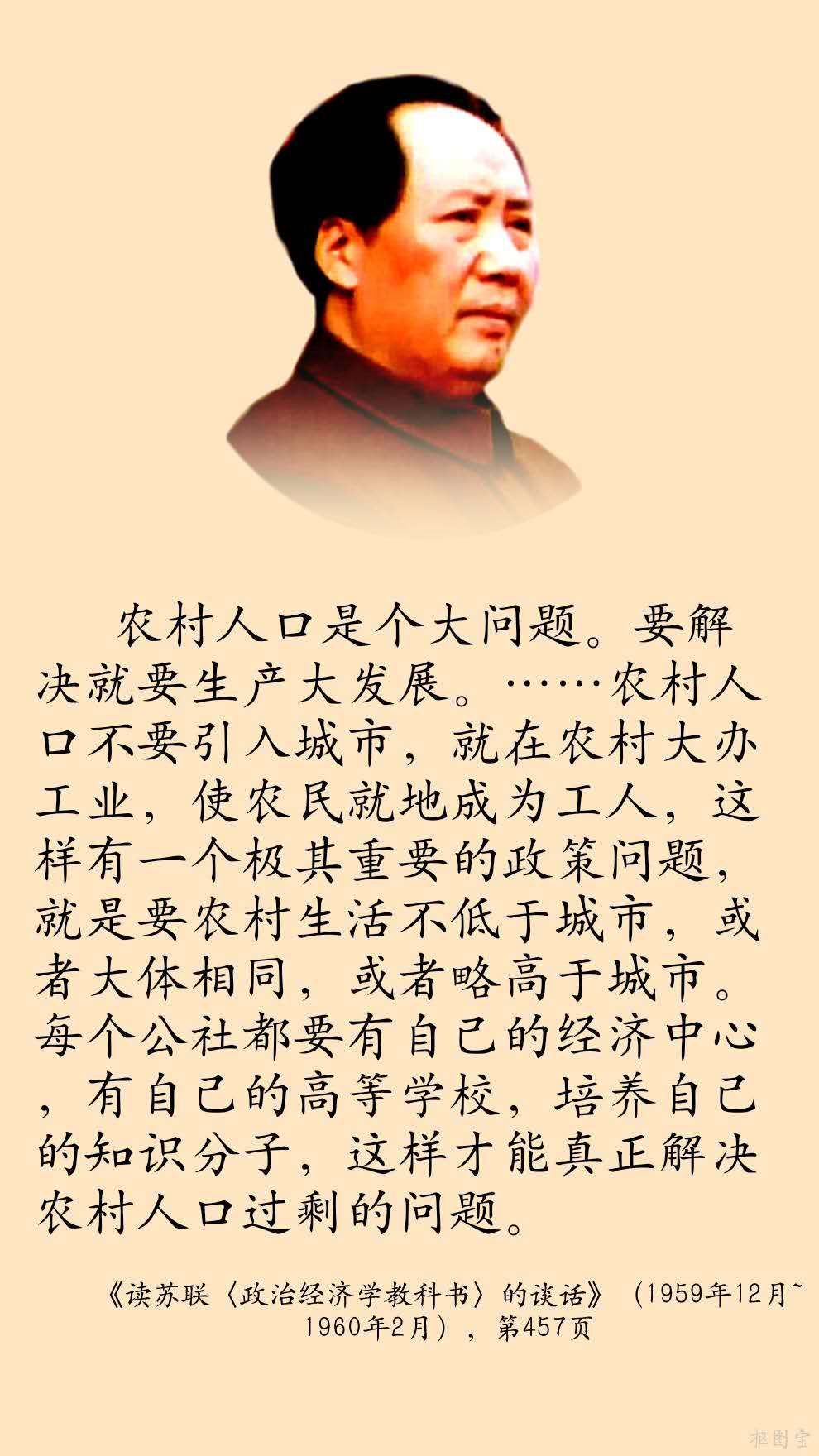 每个公社都要有自己的经济中心有自己的高等学校,培养自己的知识分子,这样才能真正解决农村人口过剩的问题。