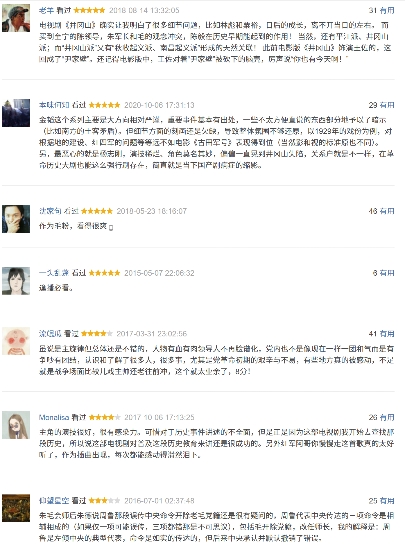 截图来自豆瓣评价 - 井冈山 (豆瓣) (douban.com)