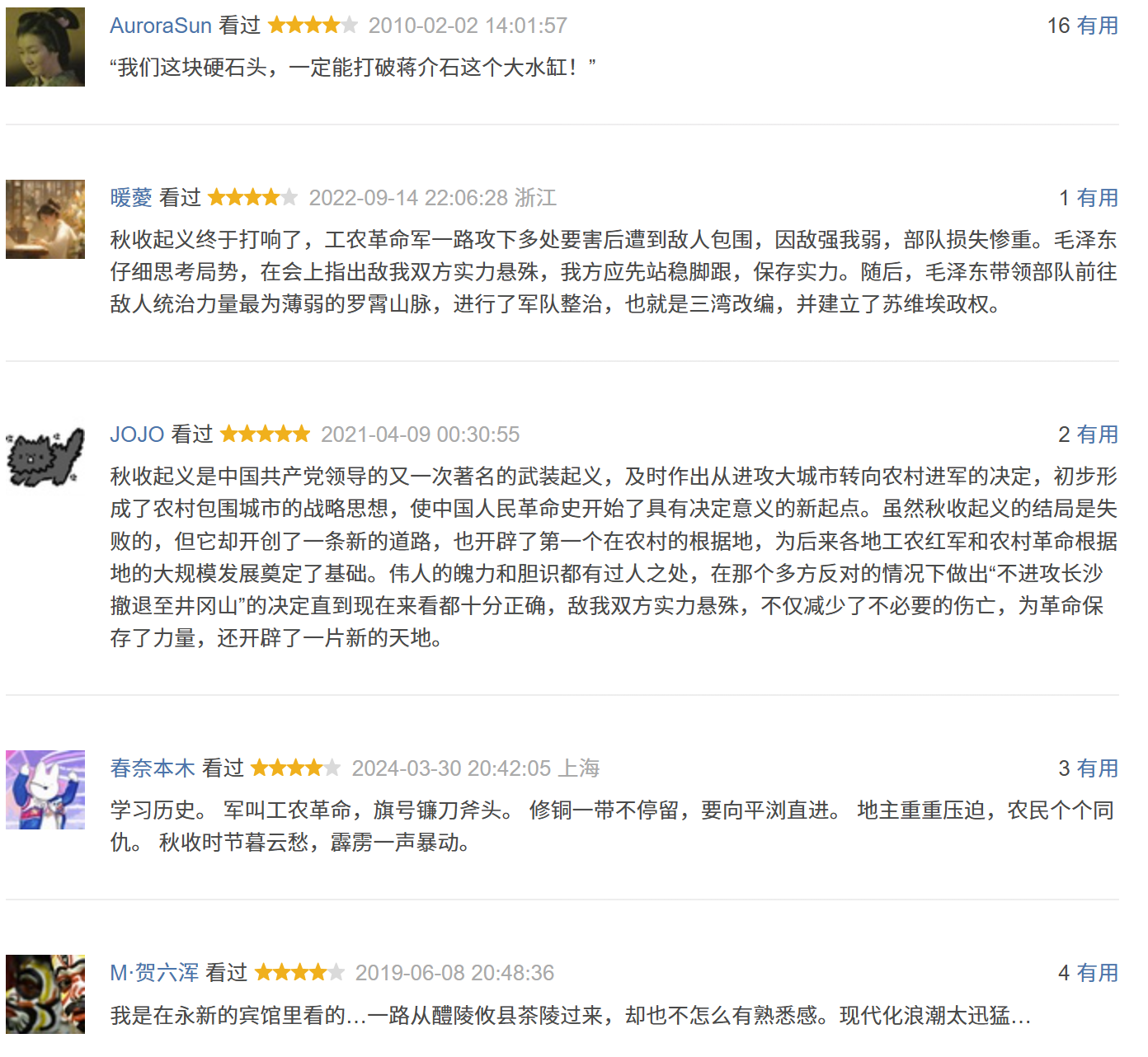 截图来自豆瓣评价 -秋收起义 (豆瓣) (douban.com)
